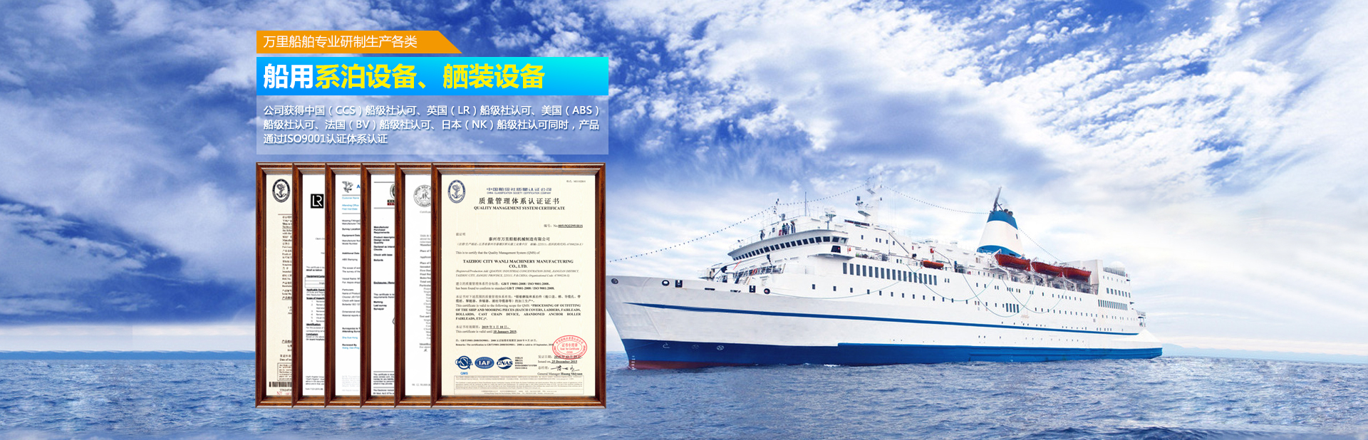 泰州市萬(wàn)里船舶機(jī)械制造有限公司位于姜堰市西郊橋頭工業(yè)集中區(qū),東臨寧靖鹽高速公路,南傍寧啟鐵路及328國(guó)道,距泰州火車站10公里,交通十分便利。 本公司是一家研制生產(chǎn)各類船用系泊設(shè)備、舾裝設(shè)備的專業(yè)廠家,所生產(chǎn)產(chǎn)品品種齊全、質(zhì)量可靠。其中導(dǎo)纜器、導(dǎo)纜滾輪、導(dǎo)纜孔、帶纜樁、棄錨器、人孔蓋、導(dǎo)鏈滾輪廣泛應(yīng)用于國(guó)內(nèi)各大船廠,同時(shí)外銷日本、韓國(guó)、西班牙、意大利、臺(tái)灣等國(guó)家及地區(qū)。本公司已獲得中國(guó)(CCS)船級(jí)社認(rèn)可、英國(guó)(LR)船級(jí)社認(rèn)可,美國(guó)(A···